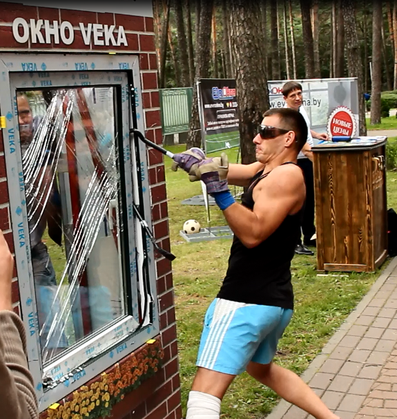 Проверка на прочность3 сентября в день города Минска компания Евроокна поздравила минчан и гостей столицы праздничным шоу. В который раз мы предоставили возможность участникам праздника побывать в роли грабителя и попробовать взломать окно, сделанное из качественного профиля VEKA и противовзломной фурнитуры Siegenia. Участникам «взлома» были предоставлены всевозможные ударные инструменты (лом, молоток и монтировка). И в очередной раз участники акции смогли убедиться в том, что окна, сделанные из профиля Veka – это изделия, которые соответствуют высшим стандартам качества. Поставив окна в компании Евроокна, Вы можете быть уверены в прочности конструкции и своей безопасности. |